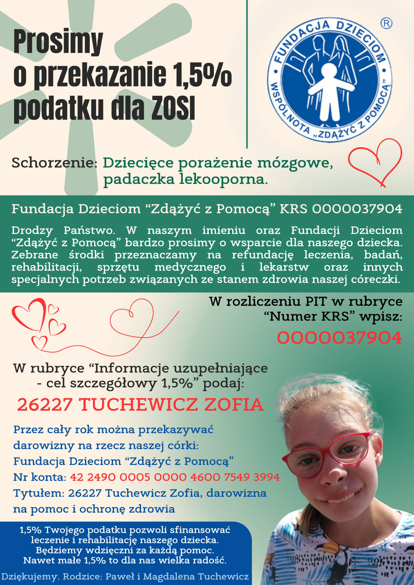 02mar02/03/2026 POMAGAMY :) Fundacja Dzieciom „Zdążyć z Pomocą” TUCHEWICZ ZOFIA administrator2026-03-02T15:12:16+01:00 Aktualności 42 2490 0005 0000 4600 7549 3994 Tytułem:26227 Tuchewicz Zofia darowizna na pomoc i ochronę zdrowia Zalaczniki:Prosimy o przekazanie 1,5_ podatku dla ZOSI_20260104_123307_0000 (496 kB) Udostępnij ten wpis Facebook Email